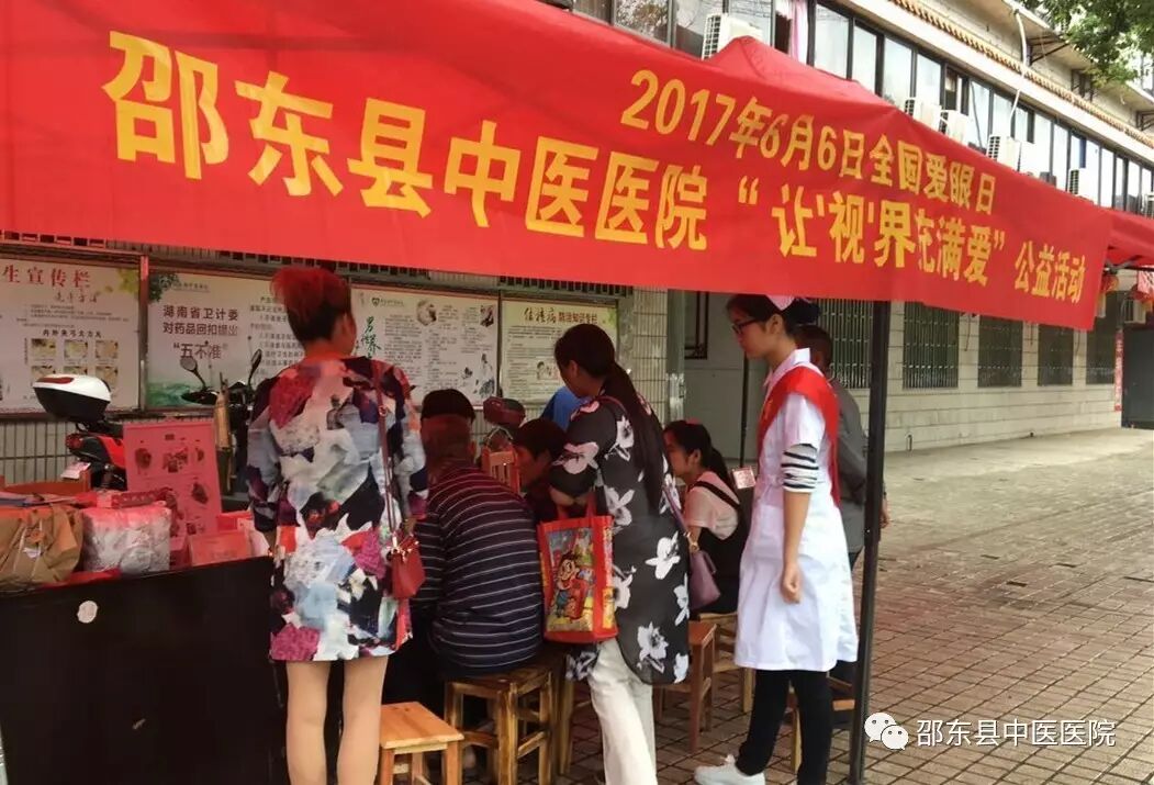 为迎接全国爱眼日,6月6日,邵东县中医医院在门诊大楼前坪举办了“让‘视’界充满爱”爱眼日义诊活动。