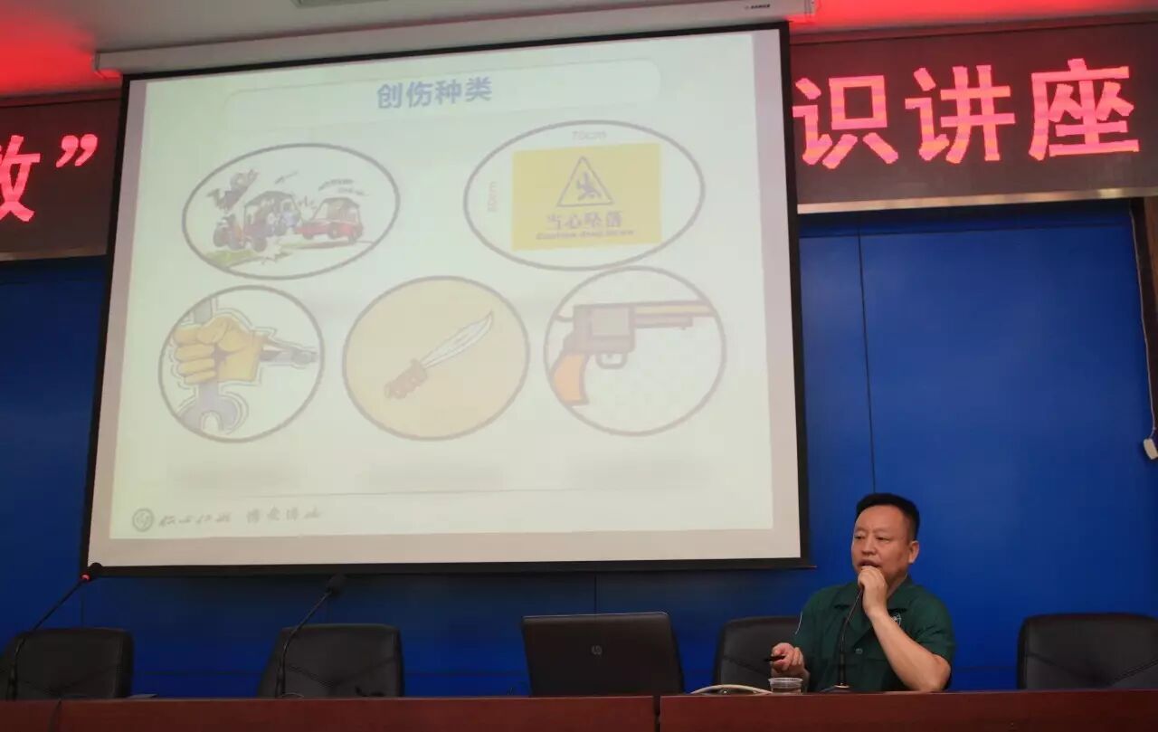 培训现场,我院急诊科主任唐会林为交警们详细讲解了如何评估急救现场环境安全、判断伤情、心外按压、人工呼吸等急救措施,脊柱外科副主任佘康云则讲解了创伤急救中止血、包扎、固定、转运的操作方法和要点,而我院急诊科护士长蒋佳喜、护理部副主任付海群进行了急救操作示范,随后还邀请交警同志上台开展模拟演练。培训中,交警们认真听讲、踊跃提问并积极参与操作互动,课后学员们纷纷表示这样的培训对于交警提高交通事故现场急救能力,为抢救伤员争取时间很有帮助。