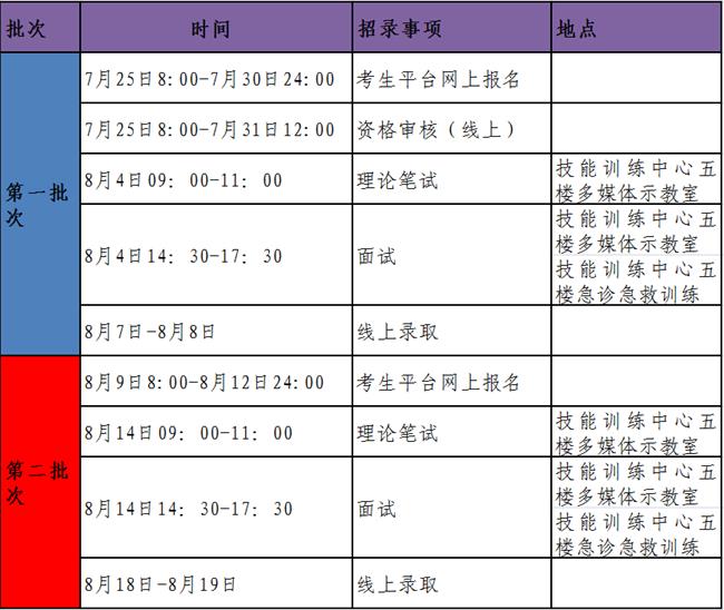 2.志愿填报。第一批次志愿填报于7月25日8:00至7月30日24:00进行,可填报1个志愿。第一批次未录取学员于8月9日-8月12日进行第二批次志愿填报。