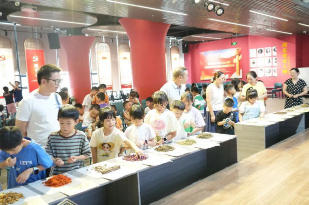 除了知识讲解,还设置了互动环节——歇后语猜药名。孩子们积极踊跃参与,在欢声笑语中学习常见中药材名称,进一步拉近了与中医药的距离。在草药辨识环节,药剂党支部带来20余种真实草药,让孩子们通过观察、触摸、闻嗅、品尝近距离感受草药特征。这一过程不仅让孩子们直观认识草药,更让他们体会到中医药作为中华民族数千年智慧结晶的独特价值。
