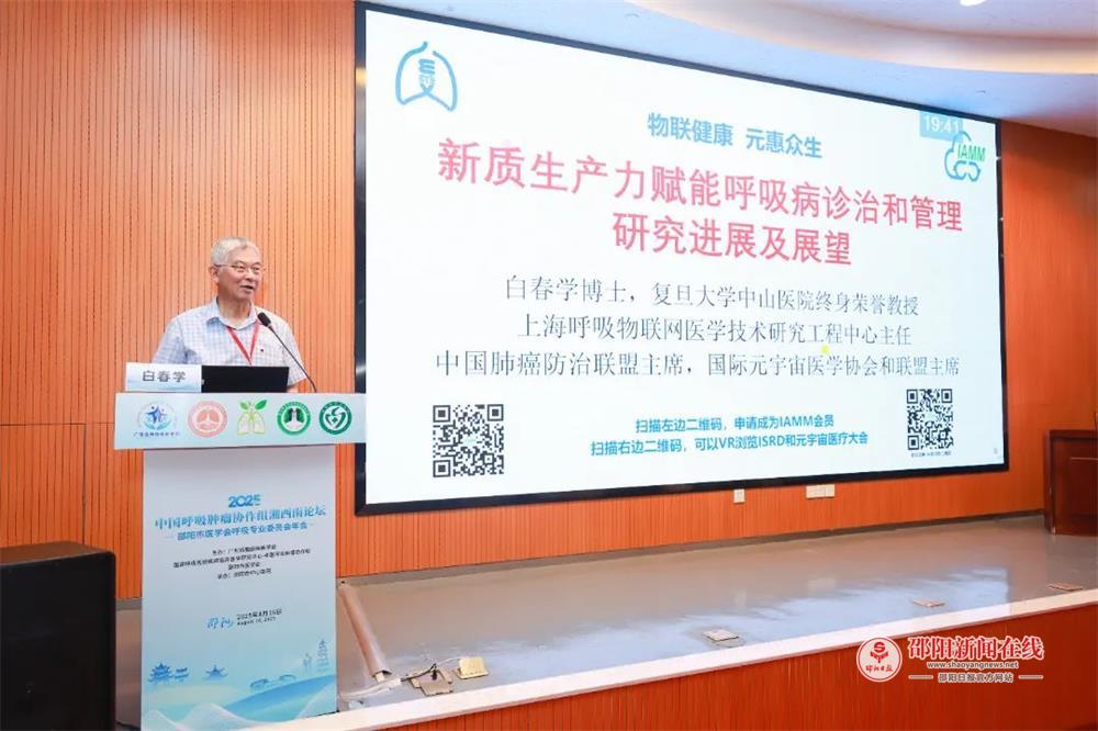 邵阳日报·邵阳新闻在线(通讯员 唐颖 易邵平 刘晓亮 刘卫庭 李文娟 阳媚 陈毅明)8月16日,一场汇聚国内顶尖呼吸肿瘤专家的学术盛会——“2025中国呼吸肿瘤协作组(CROC)湘西南论坛暨邵阳市医学会呼吸专业委员会年会”在湖南邵阳市中心医院东院开幕。来自全国各地的170余位资深专家,在领军学者、广州医科大学附属第一医院副院长周承志教授带领下,齐聚湘西南腹地,聚焦呼吸系统肿瘤防治前沿,通过高水平学术交流与实践经验分享,为提升区域诊疗能力注入强劲动力。