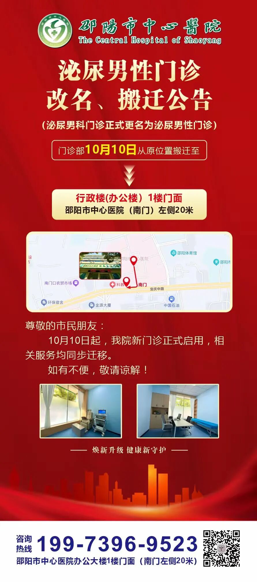 邵阳市中心医院泌尿男性门诊搬迁公告