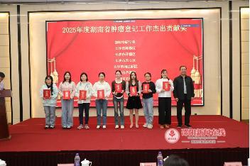 会上,新宁县人民医院肿瘤科荣膺“2025年度湖南省肿瘤登记工作杰出贡献奖”“2025年度湖南省肿瘤登记工作先进个人奖”。