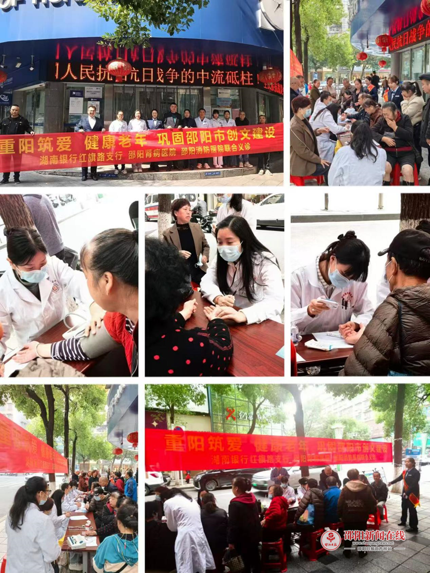 邵阳日报·邵阳新闻在线讯(通讯员 陈梦 伍倩琳)岁岁重阳,今又重阳。为弘扬敬老爱老传统美德,近日,湖南银行红旗路支行携手邵阳肾病医院、邵阳消防医院,共同举办“重阳筑爱健康老年”联合义诊活动,将健康服务与文明温度送到老年群体身边。