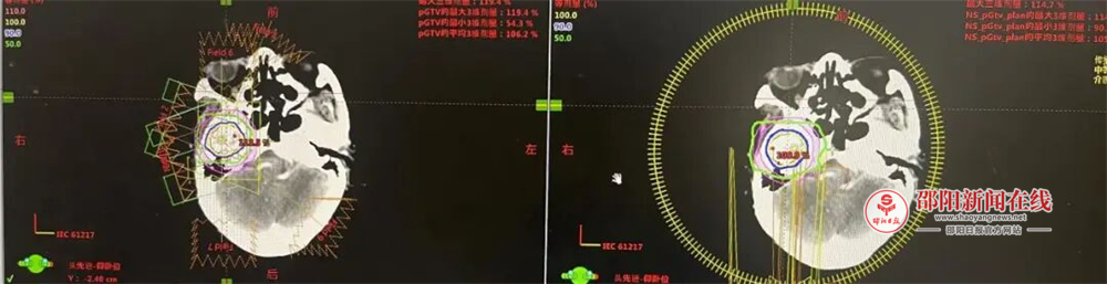 邵阳日报·邵阳新闻在线讯(通讯员 杨洋 姚伟 王勇)11月26日17时,在邵阳市中心医院东院区,有这样一群人还在紧张地忙碌着。“计划剂量验证通过”“在线影像引导2mm误差精准配准”,一声声清晰指令传来,众人协同精准调控摆位床与机架旋转到位,待六个射野全部顺利出束,东院放疗中心杨程主任与省肿瘤医院帮扶专家姚伟物理师双手紧握,非共面调强新技术在邵阳地区应用圆满成功。